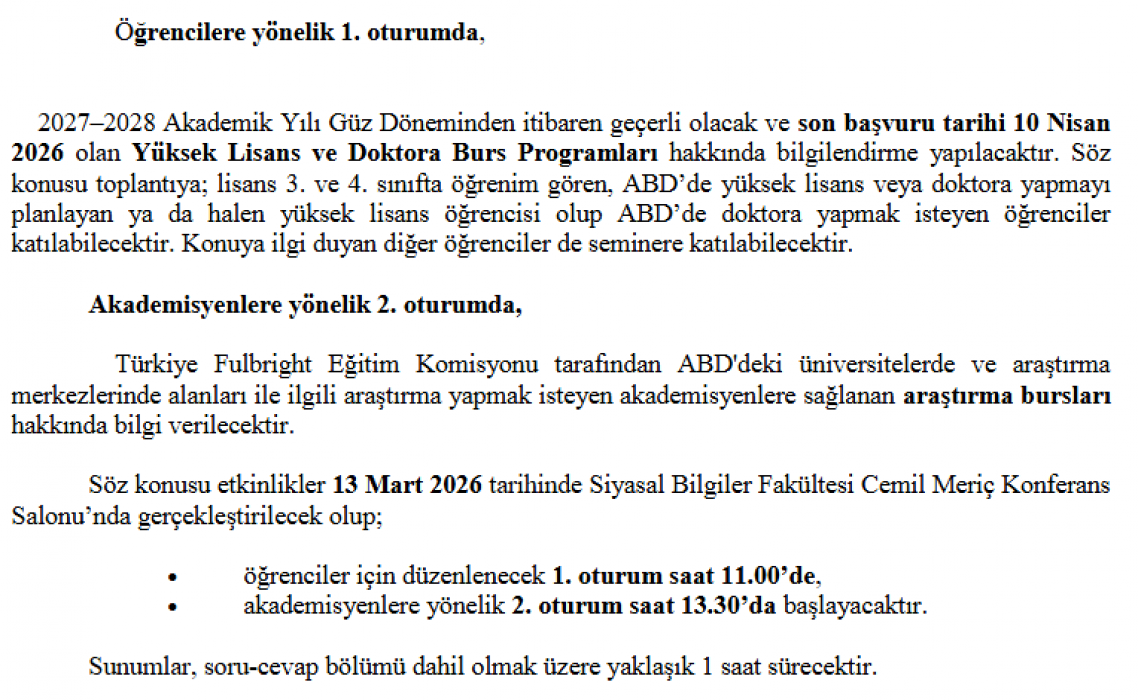 Türkiye Fulbright Eğitim Komisyonu Semineri Duyurusu