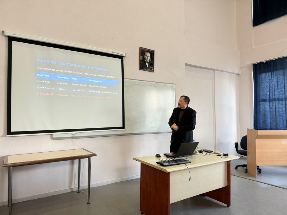3 Aralık 2025 Çarşamba günü fakültemiz Coğrafya Bölümü öğretim üyelerinden Prof. Dr. Hasan TATLI tarafından "İklim Değişikliği Düzeni: Ulusların Çöküşüne Doğru mu?" başlıklı seminer düzenledi. Fakültemiz Seminerleri kapsamında gerçekleştirilen bu ilk seminerde katkılarından dolayı hocamıza ve tüm katılımcılara teşekkür ederiz.